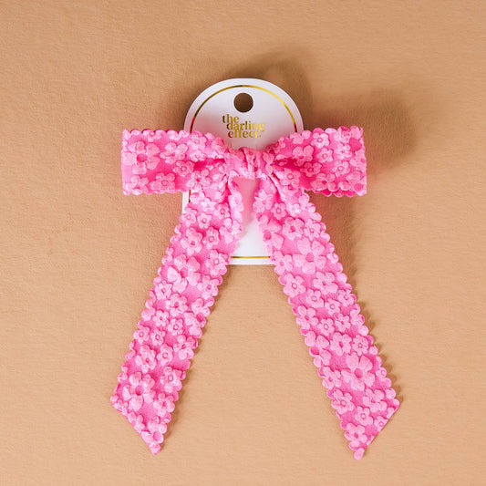 Flower Scallop Hair Bow-Hot Pink
